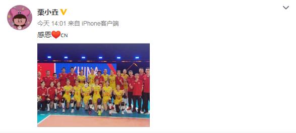 栗垚写道:“感恩!”并在后面贴上了中国国旗和爱心。虽然只有短短2个字,但还是可以看出她对于能够代表中国女排参加世联赛的激动之情。的确,在参加本次世联赛的所有球员里,除了栗垚是新人外,其余队员或多或少都有参赛经验,就连空降进入的段放都是世联赛的常客。