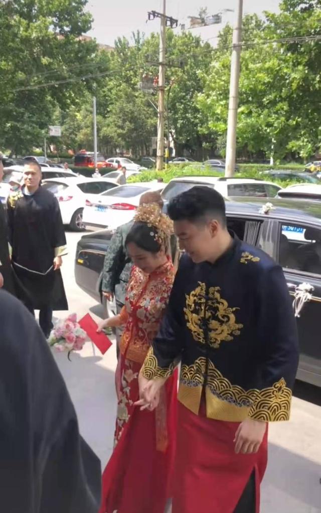 新郎李根将新娘从数百万的劳斯莱斯上迎接下来,一路十指相扣,两个人衣着中式婚礼服,皆满脸幸福的笑容,可以看到新娘肤白貌美,身材匀称高挑,只比身高1米95的丈夫矮半头左右,净身高应该在1米7以上了,完全不输给李根前妻。