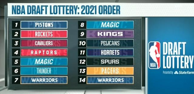 北京时间6月23日,2020-21赛季NBA季后赛激战正酣。在今天早些时候,NBA举行了2021年乐透抽签大会,最终活塞队以14%的概率摘得状元签,火箭队拿到榜眼签,骑士队则得到探花签。