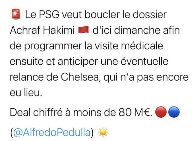 巴黎希望能够在本周内完成阿什拉夫的转会,俱乐部高层莱昂纳多与阿什拉夫经纪人的会面已经被排上日程,巴黎甚至会尽可能将报价提高到接近国米要求的8000万欧元这一数字。