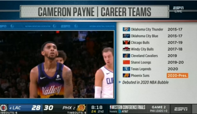 作为与太阳核心布克同一届选秀的球员,布克是首轮13号秀,佩恩则是首轮14号秀,但两人的经历天差地别。佩恩职业生涯辗转多支球队效力,甚至是美媒转播方还晒出佩恩生涯的履历,其中就有2019-20赛季曾经短暂效力CBA山西男篮,成为三双王富兰克林受伤时的救火外援。