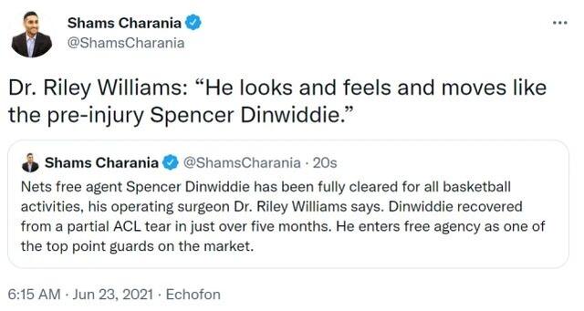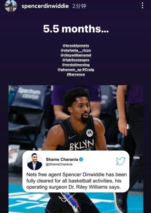 除此之外,篮网的另一位球员也备受大家关注,那就是斯潘塞-丁威迪。丁威迪赛季出因为遭遇了十字韧带撕裂的伤病,赛季早早的就报销了,篮网的季后赛一场都没有打,而此前丁威迪的一个举动彻底登上了热搜,根据ESPN报道,多位消息人士透露,篮网后卫斯潘塞-丁威迪计划不执行自己2021-22赛季的合同球员选项,成为完全自由球员。
