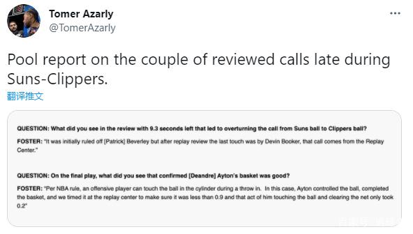 快船和太阳西决G2,最后90秒足足打了30多分钟,裁判吹罚引起巨大争议;目前NBA官方已经给出最后9.3秒的裁判报告,但最后2分钟裁判报告仍旧会热议;此前名嘴贝勒斯曾发推质疑裁判,直言联盟想要保送太阳进入总决赛。