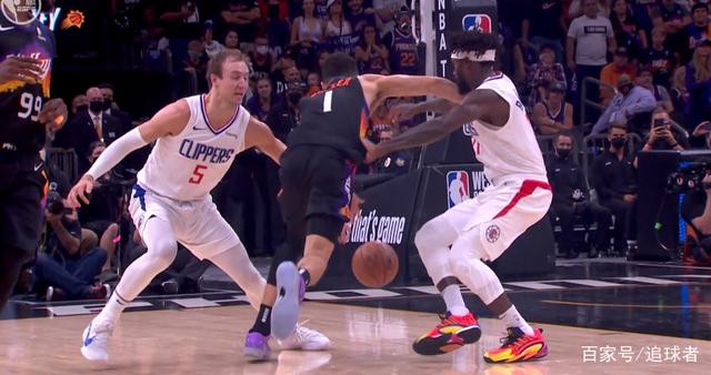 终场前9.3秒,布克运球时被贝弗利切掉,最终把球权判给快船;赛后主裁判福斯特解释:最初吹罚是贝弗利把球碰出界,但回放中心确定,是布克最后碰到球的,因此球权该给快船。