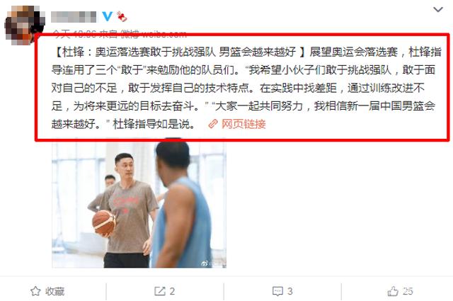 奥运会落选赛怎么打,有无成绩要求?杜锋给出答案,目标令人信服。对中国男篮来说,所求不多,对年轻的运动员们来说,干就完了。