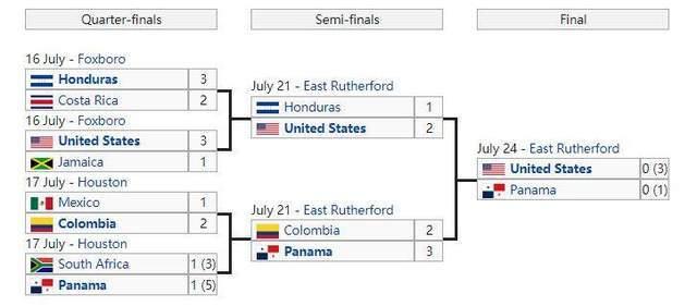 令人遗憾的是,半决赛面对同样出自A组的巴拿马,哥伦比亚还是没能报小组赛一箭之仇,尽管帕蒂尼奥在那场比赛上演梅开二度,但巴拿马还是3:2击败哥伦比亚,成功与美国队会师决赛。