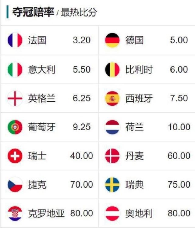 与其他小组第一动辄单场3、4个进球相比,英格兰的进攻火力未免显得有些寒酸,可即便如此,英格兰仍然受到媒体一致看好,夺冠赔率居高不下,从未跌出前5名。