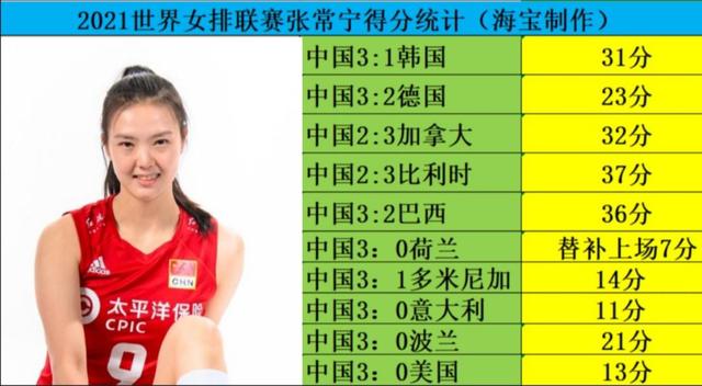 以上是张常宁在本届世联赛所有参加比赛的得分数据。即使是中国女排前三周输加拿大和比利时的比赛,张常宁也是中国女排最稳定的得分点。在决胜局,郎平也是叮嘱姚迪把球给宝宝。可见张常宁得核心作用。