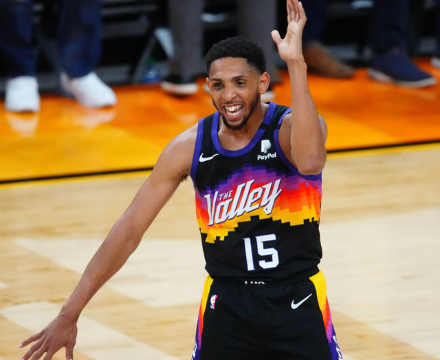 G2这场对决,双方一开始就陷入了胶着状态,整场比赛双方分差至始至终没有达到两位数,由此可见战斗是多么激烈,最终太阳凭借着艾顿的压哨空接绝杀比赛。这场比赛中,两队主力核心,布克和乔治双双哑火不断,乔治8投1中的三分球,布克则全场比赛16投5中。全场得分最高的球员当然不可能是乔治或者布克,也不是完成绝杀帮助太阳救主的艾顿,而是替代克里斯-保罗首发出场的卡梅伦-佩恩。