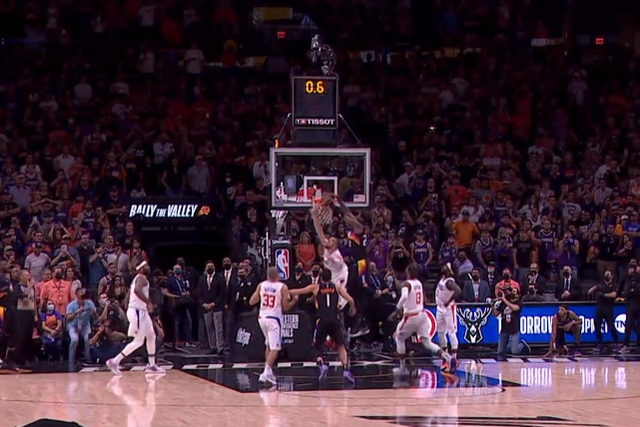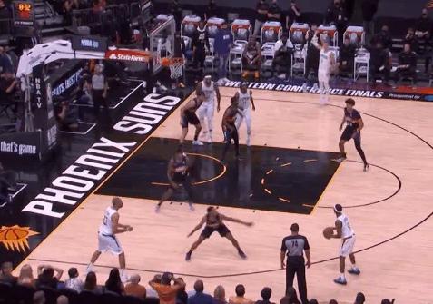 将将24秒到时的一次进攻,要不是他只身杀入禁区造成艾顿犯规,太阳下个回合就要起势了。