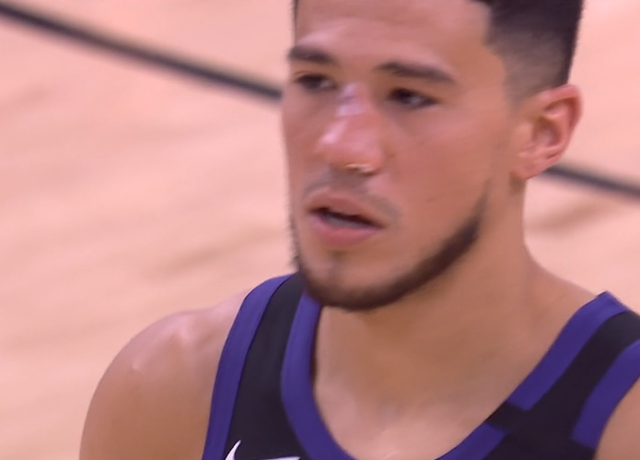 菲尼克斯大军一度建立起10分优势,可好景不长,布克在与贝弗利的直接对位中伤到面部,鼻梁骨直接飙血,无奈只能返回更衣室接受治疗。