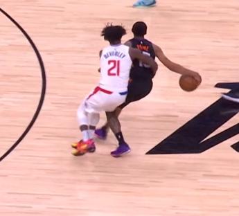 这次空接甚至只用了0.2秒,给快船还留下0.7秒但要后场发球。