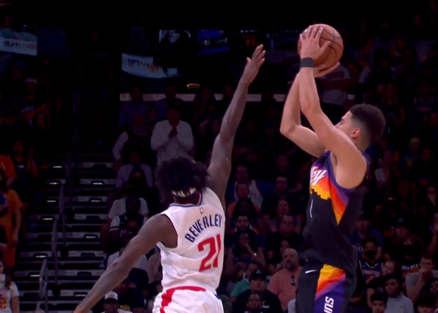 到最后一分钟还是只差三分,贝弗利牛皮糖般的防守依旧在布克身上奏效。