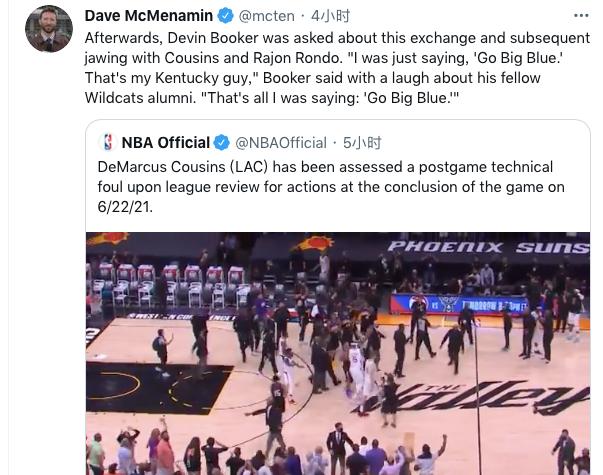 北京时间6月24日,NBA官方宣布追加考辛斯一次技术犯规。那么,考辛斯为何会在赛后怒推布克,布克透露了内情。