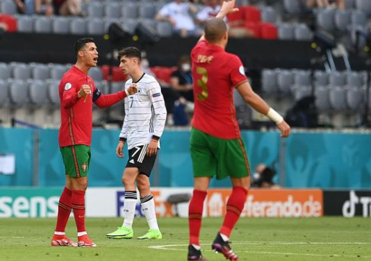 比赛开始后,葡萄牙在进攻端打得战术非常明确,就是利用C罗在边路的优势不断给法国后防线施压,毕竟本届欧洲杯法国和葡萄牙的后防线都是如同纸一般脆弱,轻轻一碰就完全可以彻底突破。这样的高强度施压终于起到效果,上半场葡萄牙收获点球,C罗一蹴而就,帮助队伍取得领先。