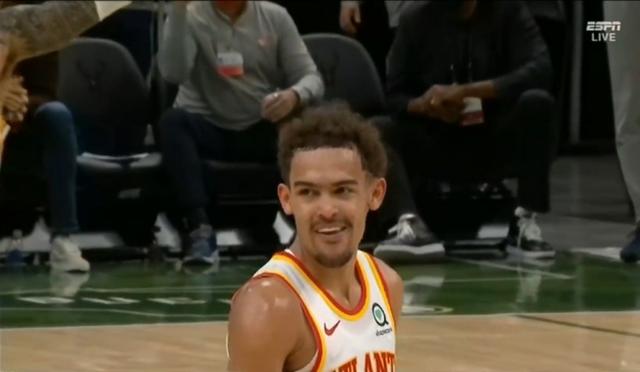 直播吧6月24日讯 老鹰队今日东部决赛首战客场力克雄鹿取得开门红,本场比赛第三节,特雷-杨一个变向将霍勒迪晃了个干净,然后抖肩三分丝滑命中。