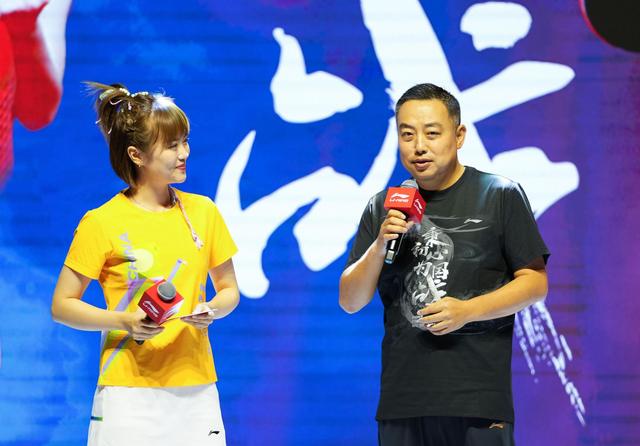 6月23日,中国乒协主席刘国梁(右)在发布会现场致辞。新华社记者朱峥摄