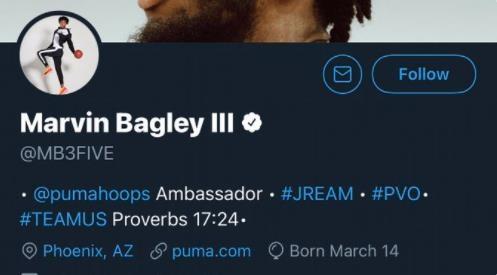 就在今天,国王球员马尔文-巴格利移除了他推特个人主页上“萨克拉门托国王队球员”的标签,值得一提的是就在不久前,他还点赞过一条网友表示他应该离开国王的推特,很明显这位榜眼秀希望离开国王的想法已经藏不住了,早在本赛季交易截止日前,就传出过巴格利被摆上货架的流言,他产生离队的想法并不意外。