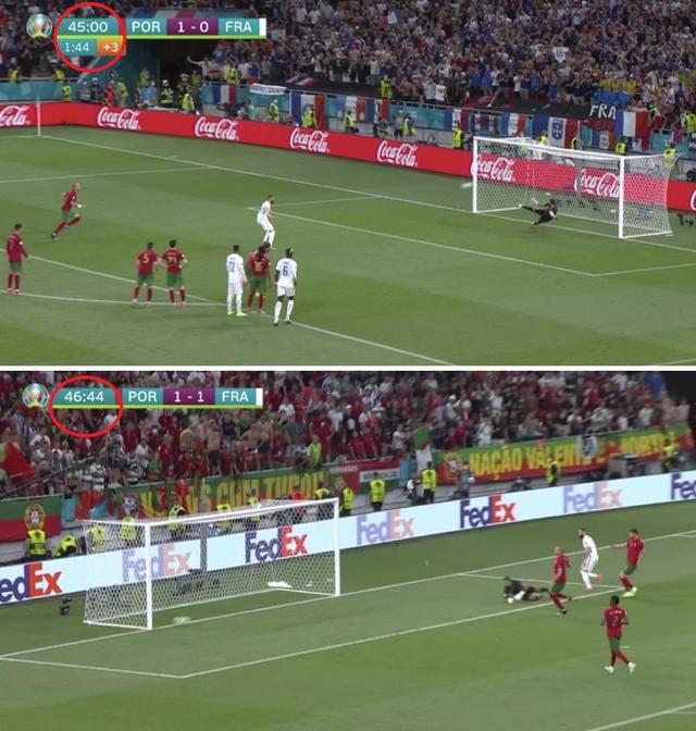 直播吧6月24日讯 今天凌晨,欧洲杯F组末轮,法国2比2战平葡萄牙。其中,法国前锋本泽马凭借在上下半场的两个进球,当选本场比赛的最佳球员。值得一提的是,本泽马的第一个进球是在上半场补时阶段的1分44秒(46分44分秒)打进的,而第二个进球则是下半场刚开场的46分44分打进的。这样一来,本泽马创造了一项个人纪录,他成为在一场比赛中同一秒内打进2球的球员。