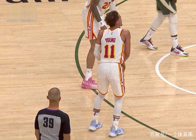 这还不算完!命中三分球之后,老鹰球员开始回防,雄鹿球员准备去发底线球,特雷杨还站在三分线 上,一动不动,这时候镜头也只能给他一个特写。