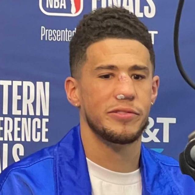 直播吧6月25日讯 在西决G2中,布克因与贝弗利面部相撞,血流满面。