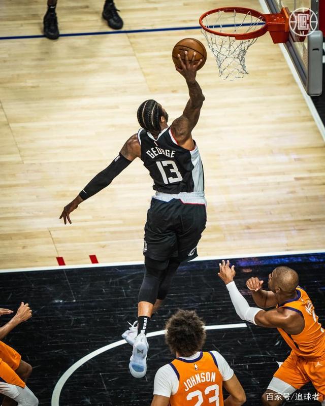 G3开打没多久,乔治早早投进三分,翻身中投也有,之后几次投篮都打铁不中,首节打满12分钟6投2中拿到5分4篮板,不过太阳双核布克和保罗的状态也不佳,两人单节9投0中狂打铁;到了第二节,快船进攻明显下滑,布克和保罗带队反超比分,两人也终于得分,不过乔治半场准压哨劈扣太精彩。