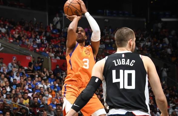 全场结束,快船最终拿下了这场比赛,将系列赛大比分拉到了1-2,保罗乔治得到了27分,祖巴茨神勇15分16篮板。太阳这边保罗得到15+12,布克低迷得到15分。