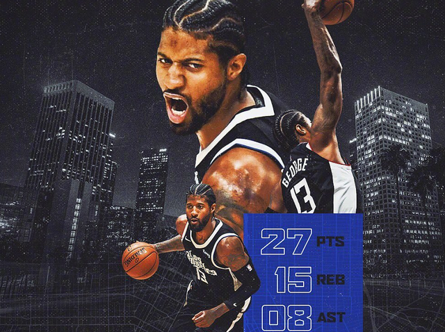 在NBA季后赛西部决赛G3的比赛中,乔治全场出战43分钟,26投9中,砍下27分15篮板8助攻的准三双表现,率领快船106-92击败太阳;