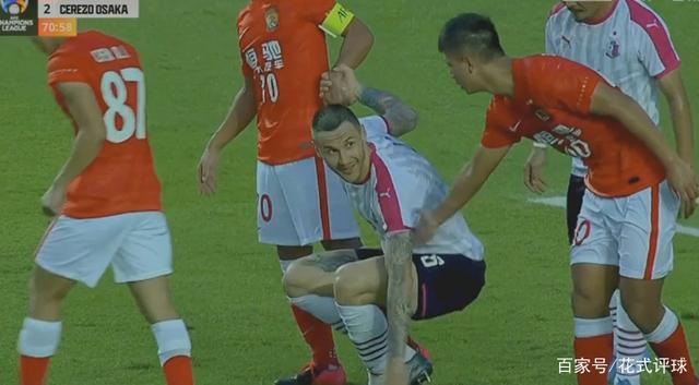 比恒大小将高半个头!所以在防守定位球时,身穿大阪樱花6号球衣的帕格努萨特就是恒大小将们的最大威胁,也是恒大主要的盯防对象。