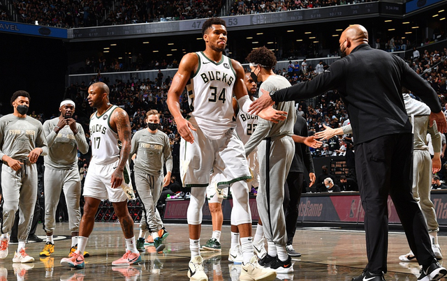 先来看一下雄鹿一路晋级旅程。首轮4-0击败老冤家热火,上赛季热火曾4-1淘汰雄鹿,但是本赛季雄鹿增加了塔克、霍勒迪、波蒂斯、福布斯等特点鲜明的球员,而热火停滞不前。雄鹿没有意外的杀入东部半决赛后,遇到了篮网,这两支球队早早相遇,一定有一方止步东决大门之外。篮网因为伤病问题,哈登第一场打了43秒退赛,第五场带伤上阵。欧文第四场被字母哥垫脚,到现在还在养伤,杜兰特苦苦支撑,实际上原本晋级的也应该是篮网,根据抢七大战裁判报告显示,最后3次误判漏判,2次雄鹿得利。