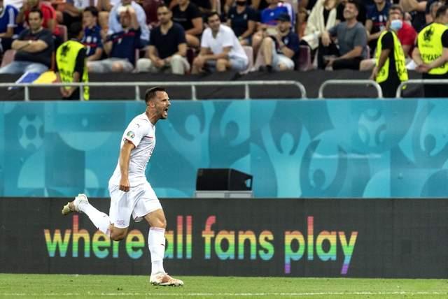 第15分钟,聚贝尔左传中,塞费罗维奇力压朗格莱头球破门!瑞士队1-0领先!