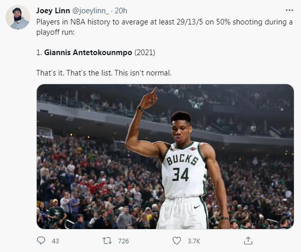 字母哥依旧是老鹰无法解决的一个点,季后赛场均29分13篮板5助攻,命中率54.6%,他是NBA历史上第一个能在季后赛达到这一数据且命中率过50%的球员,老鹰的科林斯、卡佩拉根本无法限制字母哥。老鹰有这样的特雷杨,怎么赢?