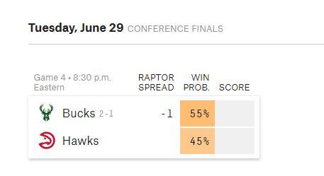 这个消息一出后,老鹰在自己的第二个主场赢球的概率只剩下45%,雄鹿拿下赛点的概率提升到了55%,看起来老鹰真的无力回天了。