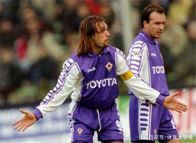 巴蒂机关枪扫射成名动作,不过佛罗伦萨也没那么差,也是意甲七雄之一,每个赛季前期很厉害,后期乏力,那时候尤文图斯和AC米兰第一档,佛罗伦萨,乌迪内斯,拉齐奥,罗马,帕尔马,国米基本一个档次,各自有厉害的射手,相当于未夺冠前的,热刺,拉科罗尼亚,勒沃库森。