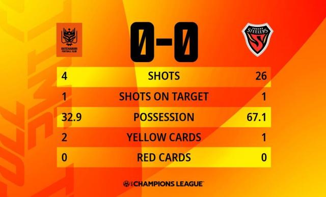 从赛后数据统计可以看出,拉查武里一直处于被动挨打的状态,全场被浦项铁人完成了26次射门,控球率不到对方的一半。不过让人意外的是,浦项铁人全场26次射门竟然只有1次射正,全队没有一人带射门靴?