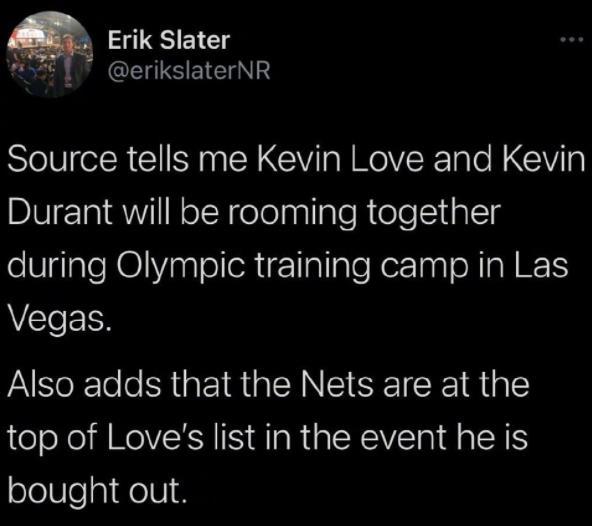 北京时间7月3日,为备战东京奥运会,美国男篮将于7月7日至19日在拉斯维加斯进行集训,篮网球员杜兰特以及骑士球员乐福均在其中。据篮网记者Erik Slater报道,杜兰特和乐福在男篮集训期间会住在一起,若乐福最终被骑士买断,篮网将是乐福的首选目的地。