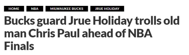 “我认为每个人,作为一个孩子,都看过克里斯-保罗的篮球比赛。但我并不是说他已经老了,”根据《今日美国》记者马克梅迪纳的报道,雄鹿队后卫是笑着说他的最后一句话,无疑是善意的调侃。