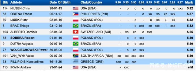 北京时间7月1日,在波兰举行的Irena Szewinska田径纪念赛男子撑竿跳比赛中,25岁菲律宾名将奥比纳以5米87夺得亚军,本赛季第二次打破菲律宾国家纪录,超越薛长锐保持的5米82中国纪录,上升到亚洲历史第三位,奥比纳正在转变为国际大赛型选手,竞技状态火热,有望突破5米90成绩线,打破尘封23年的5米92亚洲纪录,东京奥运闯进决赛。
