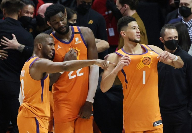 而布克接受采访时表示,和湖人的系列赛帮助了他们学到更多东西。布克:“那时候我们输掉了两场比赛,第二天回到训练馆我们会更专注,你能感觉到每个人身上的能量。这样的经历塑造了我们,也学到了很多东西,我很高兴我们有这样的经历。”实话实说,在浓眉没受伤前,那支湖人给太阳施加的压力最大,当然,太阳一路走来,对手纷纷缺少绝对核心,从戴维斯到穆雷,再到小卡,但伤病是比赛的一部分,太阳自己也在经历伤病,但是他们坚持下来了。布克透露,自己经过这5天的治疗恢复,总决赛将正式摘下面具。