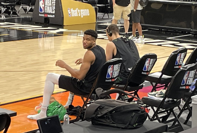 字母哥伤情更新。雄鹿随队记者格林贝里报道了字母哥的恢复情况。字母哥和雄鹿大部队分开训练,资格在距离菲尼克斯市中心不远处一处私人球馆进行特训。包括医疗团队、字母哥经纪团队、教练组、管理层都在密切关注字母哥的伤情进展。在字母哥左膝过度伸展受伤后,当时的伤情描述为“左腿完全不能移动”,但在最近几天,字母哥进步明显,他甚至可以使用受伤的左腿进行训练。但用格林贝里的话来说,字母哥现在还没有到和全队合练的程度,出席G1的可能性非常小。