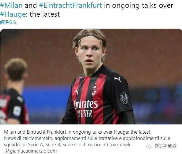 报道称,法兰克福在几天前展示出了对海于格的兴趣,而这笔潜在交易最近几天进展迅速,米兰愿意出售合同2025年到期的海于格,不过他们希望能从挪威人身上得到更多转会费。