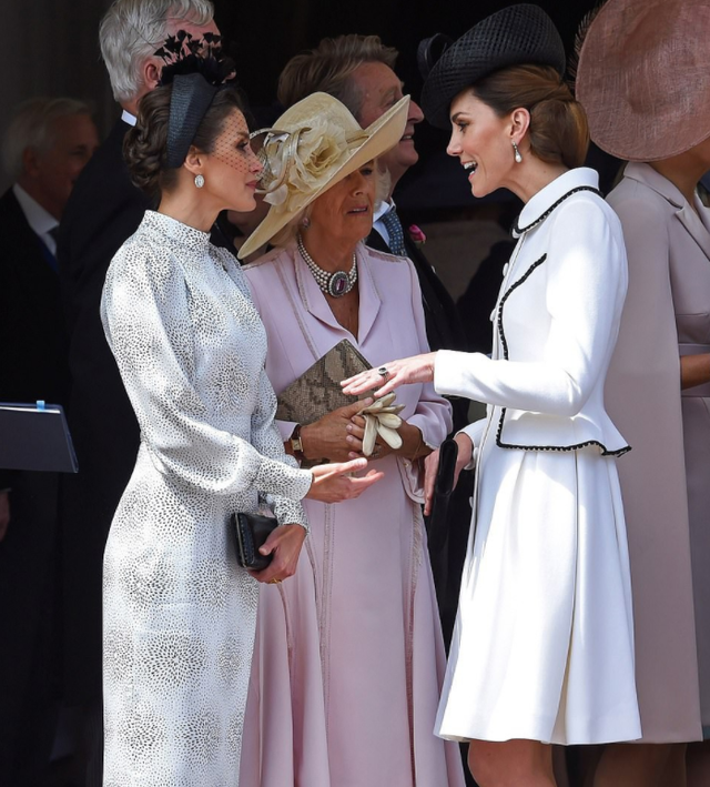 在2019年的那场嘉德节庆典上,莱蒂齐亚与凯特同坐一辆车,两人挨得很近,摄影师的镜头对她们狂闪,这是一次激动人心的世纪同框。