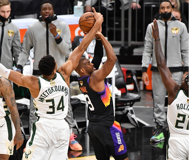 太阳队和雄鹿队能够会师本赛季的NBA总决赛,出乎了众多球迷的预料,对于征战联盟十六个赛季的保罗和两届常规赛最有价值球员字母哥来讲,他们都希望能够一黑到底问鼎最终的总冠军,前两场总决赛战罢,太阳队靠着个人表现出色的圣保罗捍卫了自己主场的荣誉,大比分2-0取得了领先,接下来的第三场比赛,两支球队将移师密尔沃基,对于雄鹿队而言,回到主场之后的首场比赛是绝对不能输的,毕竟在NBA的历史当中,从未有球队能够在0-3大比分落后的情况下完成惊天大逆转,因此第三场比赛全力争胜是雄鹿队的唯一目标,那么他们能否在主场球迷的助威声当中,击败太阳队保住系列赛的悬念,就成为了众多球迷关注的焦点,个人认为,虽然前两场比赛雄鹿队全部落败,但是从比赛的过程来看,他们完全有着和太阳队一战的实力,米德尔顿和霍勒迪只要能够正常发挥,雄鹿队靠自己内线巨大优势获胜的可能性还是非常大的!