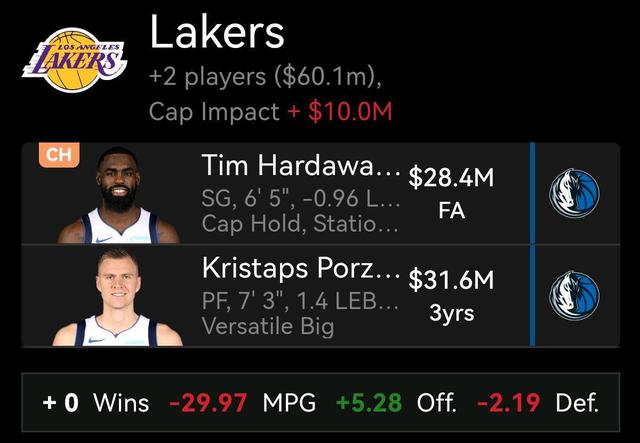 可能有球迷会说独行侠会这么轻松的同意吗?很简单,他们只需要用湖人送来的选秀权去交易适合自己的内外线球员便可。