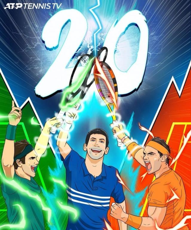 至此,费德勒、纳达尔、德约科维奇,三巨头的大满贯冠军数均达到20个,并列ATP历史第一。