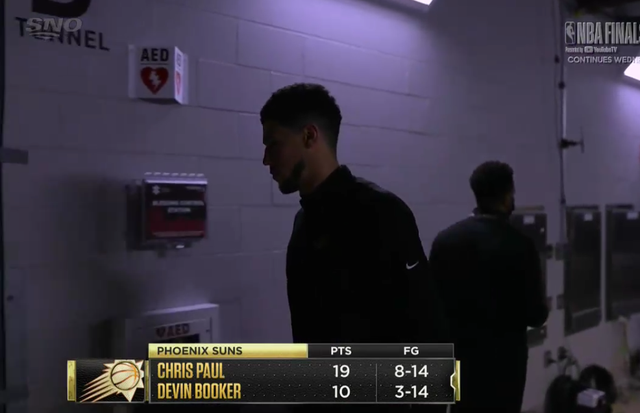 客场作战的菲尼克斯太阳,在第一节比赛还稍占上风,主要是依靠艾顿出色的个人能力,7投6中拿到12分3篮板1抢断的数据,以及克里斯-保罗的中距离跳投,4投3中拿到6分3助攻。靠着两人的出色发挥,太阳在第一节取得了3分的领先优势。布克在第一节7投1中只有5分2篮板1助攻,次节比赛归来之后,依旧没有找到手感,4投1中拿到2分1篮板。