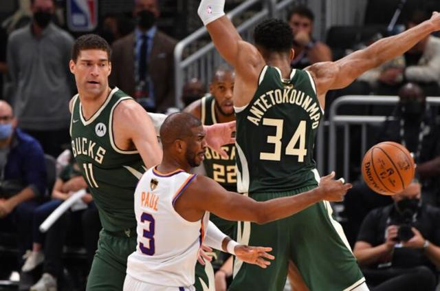此前两场表现出色的布克,在这场比赛受到针对性防守后,状态低迷,他前三节出战了29分钟,但14投只有3中,最终只得到7分,而整个第四节,蒙蒂大胆地将布克弃用,一方面是太阳已经落后20+,另一方面,则有让他好好冷静和反思的意思,以便更好地为下一场比赛做好准备。而显然,布克的低迷,让太阳队失去了一位最强得分手,也让他们难以在进攻端匹配雄鹿的进攻。