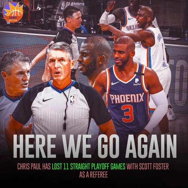 这个斯科特福斯特懂的都懂,前几天才介绍过。该老哥人送外号主席之爹,但凡有他在场的比赛克里斯-保罗从未赢过,这种单方面压制已经持续了11场,算上今天很可能是12场。