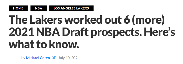 早早被淘汰的卫冕冠军湖人,在本周四就完成了一次6人的试训,而在今天,湖人又完成了一次6人试训。