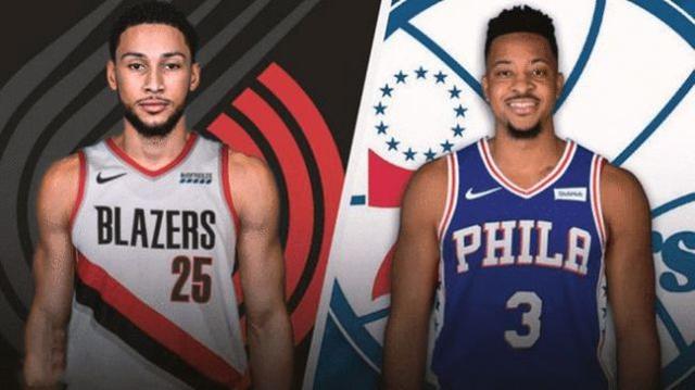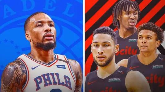 勇士队得到利拉德;费城得到维金斯+CJ麦科勒姆;开拓者队得到西蒙斯+怀斯曼。